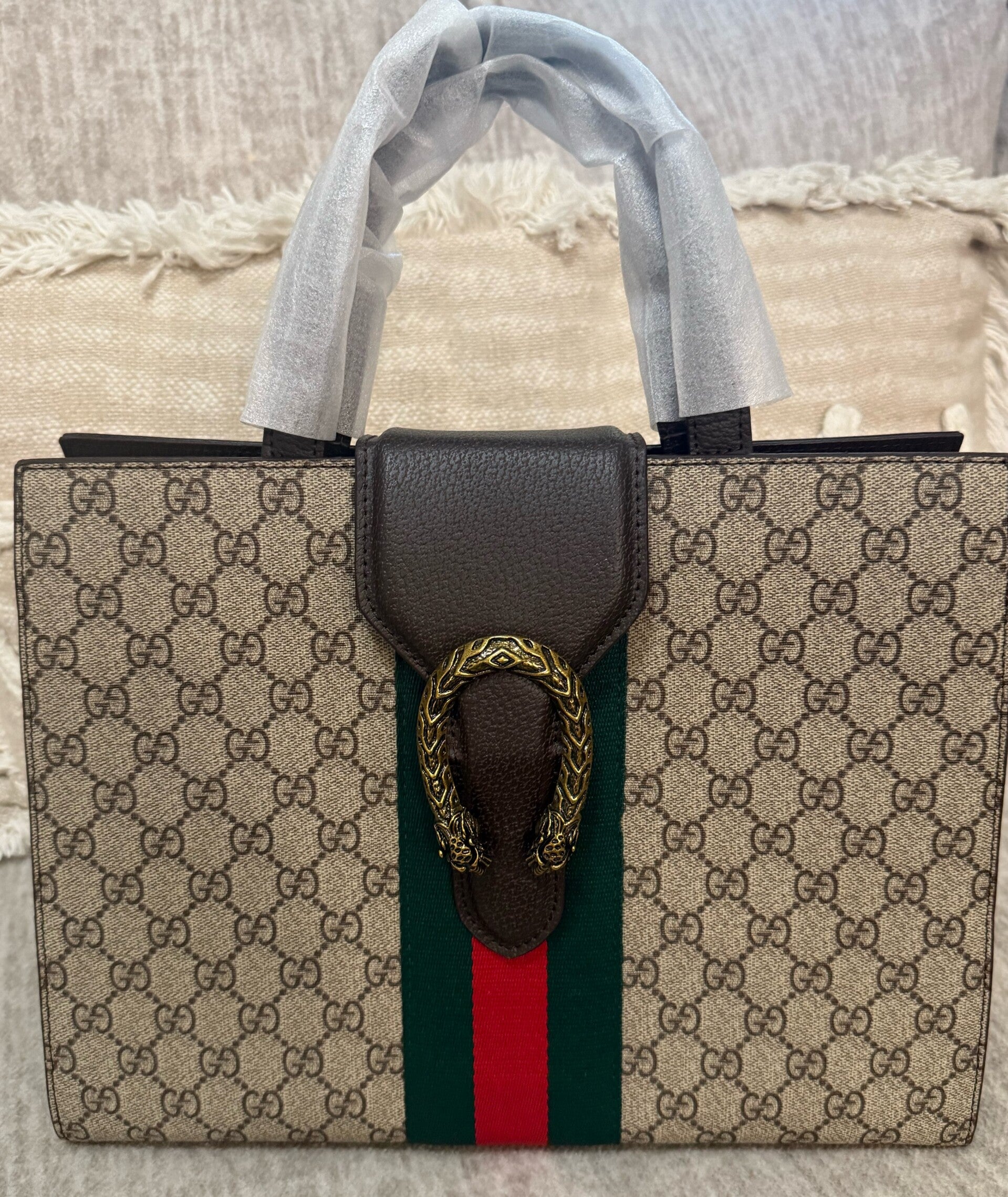 This tote bag is a must have. Comes with dust bag.
