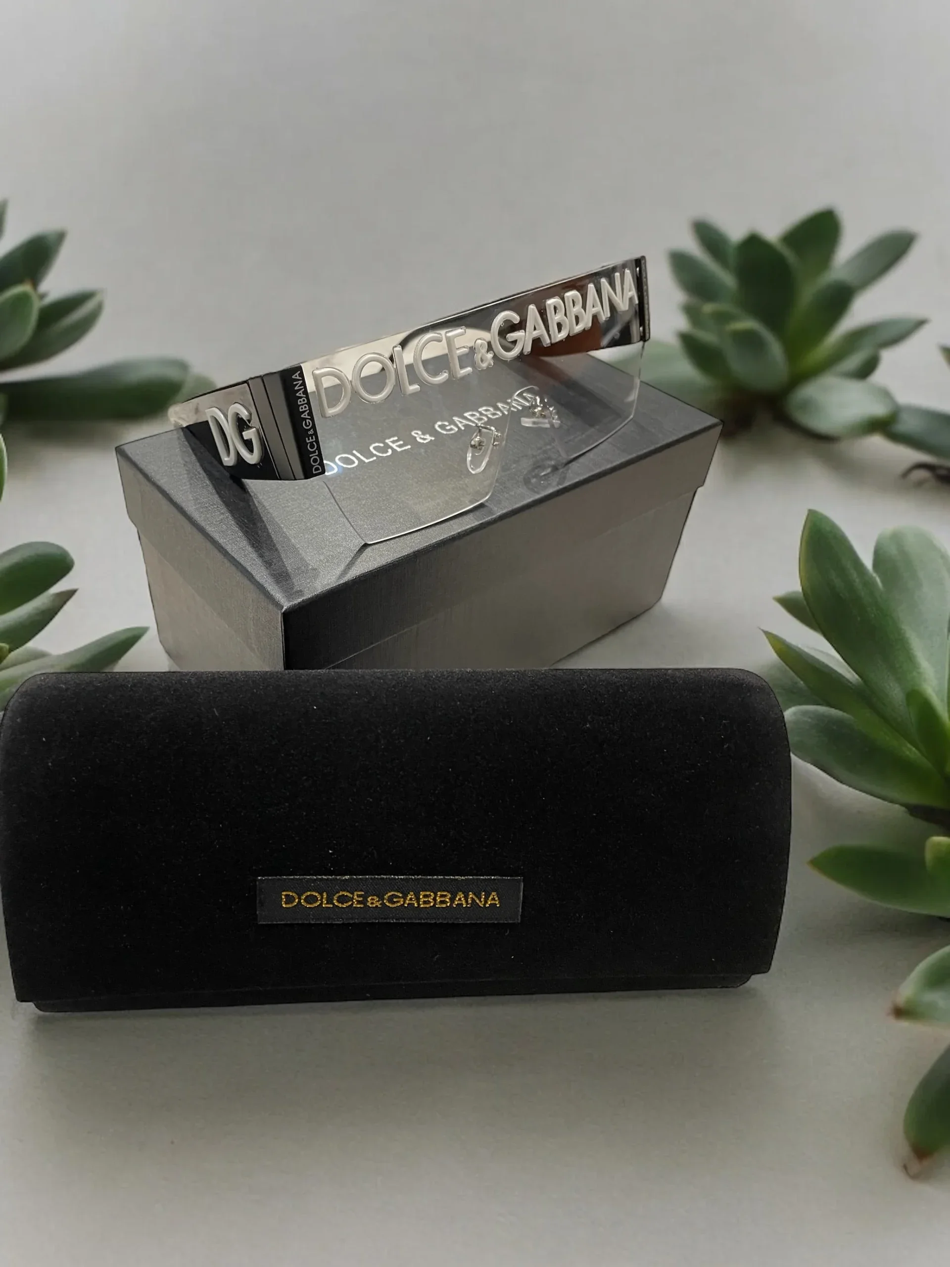 Sunglasses with black-and-white frame clear lens. Comes in a box and has a case.