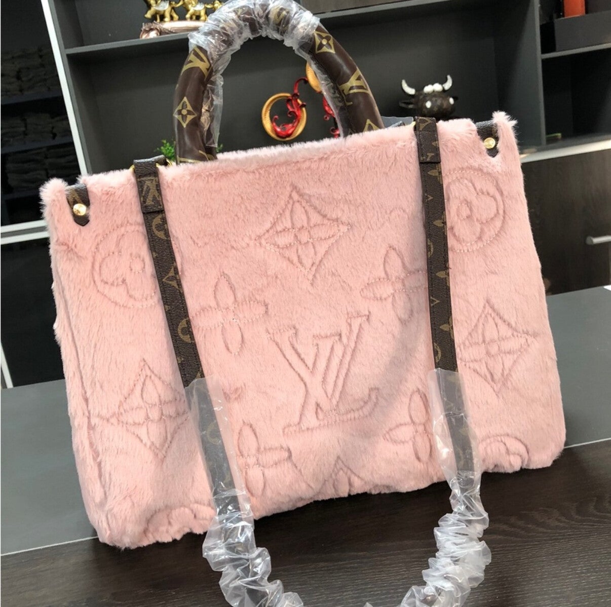 Fur OnTheGo with cushion handles and a 12" drop strap. Comes with dust bag.