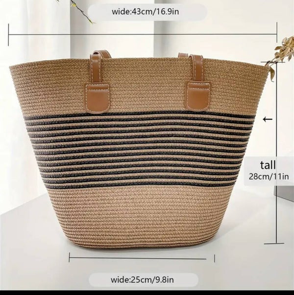 This straw bag and hat is perfect for those sunny days. Bag zips at the top. Comes with dust bag.