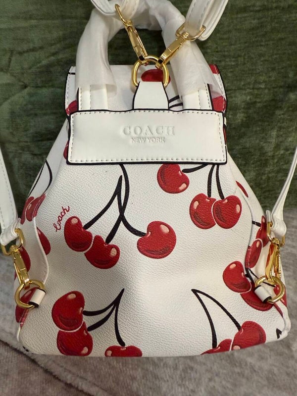 This small Coach 🍒 cherry backpack purse is cute, and the perfect size. Comes with a dust bag.