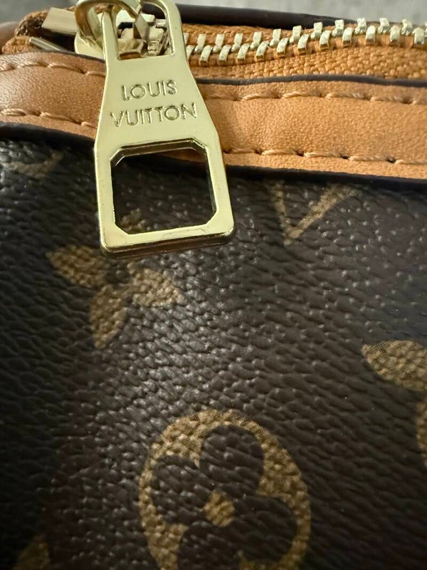 This is a big beautiful speedy style bag comes with a shoulder strap and dust bag.