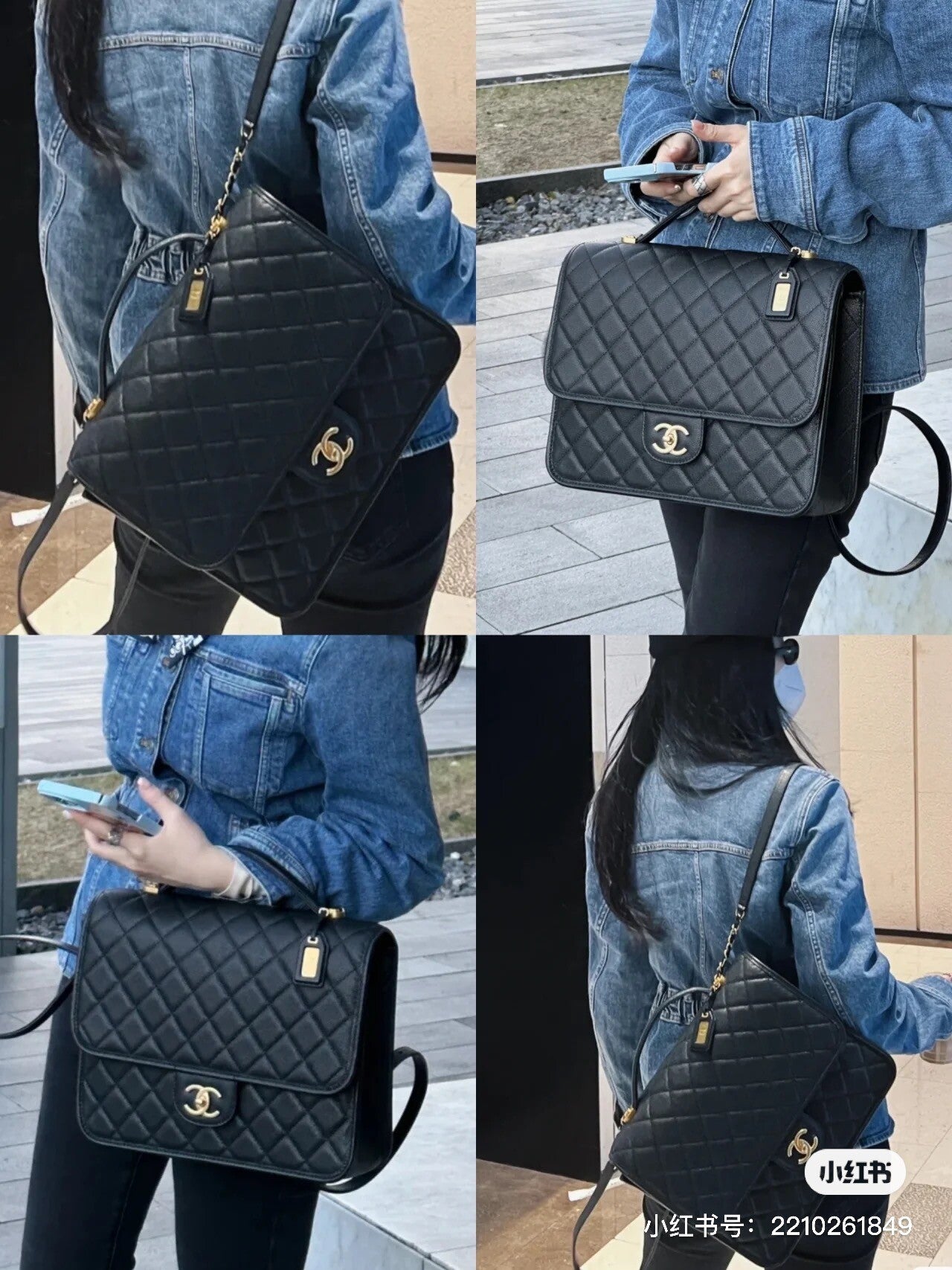 Black backpack purse. Carry by the handle or as a backpack purse. Comes with a dust bag.