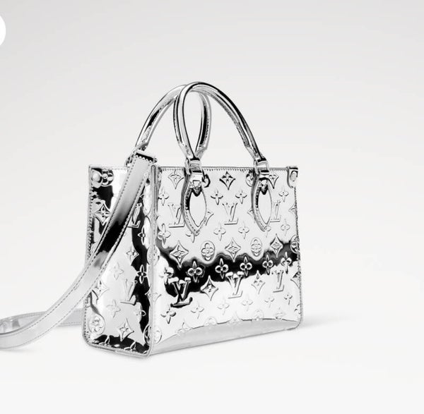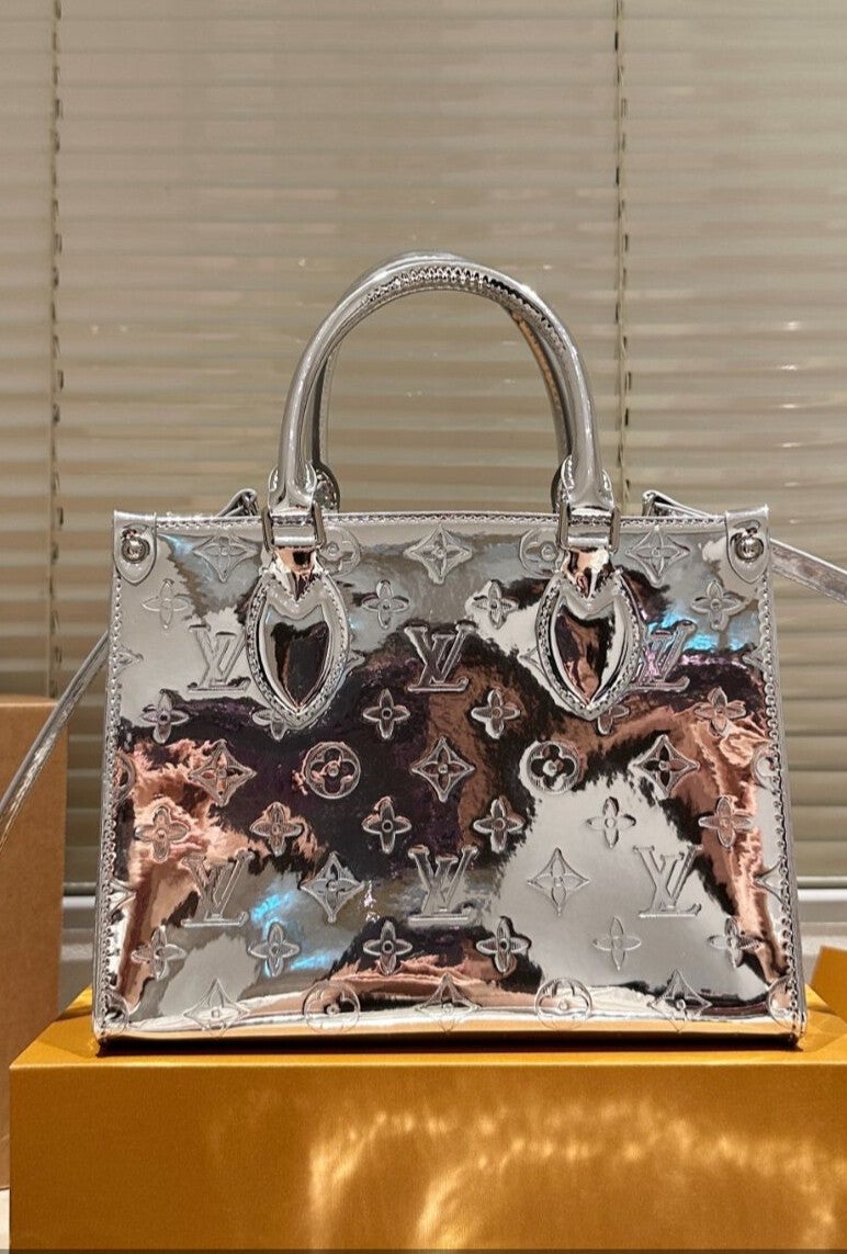 High quality silver metallic OnTheGo PM bag. Comes with shoulder strap and dust bag. A must have for the fashion forward fashionista.