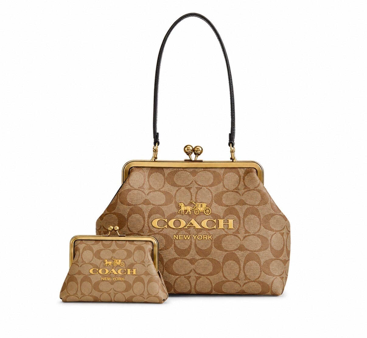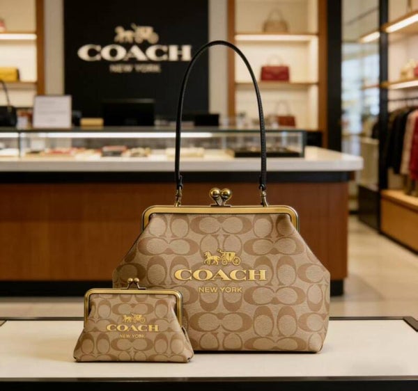Turn heads everywhere you go with this beautiful 2pc tan statement bag